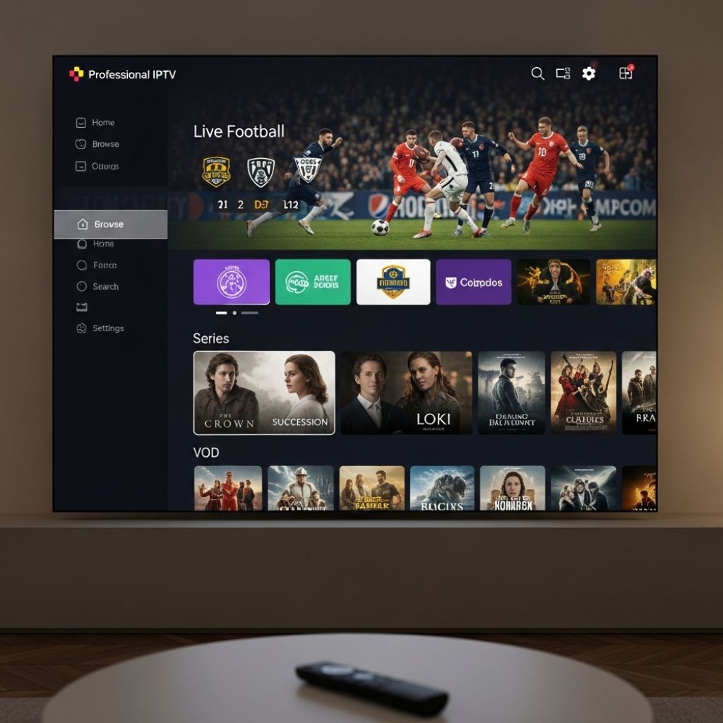 Accès illimité à des milliers de chaînes Marocaines et Internationales, avec retransmissions sportives en direct, films, séries et contenus en qualité 4K Ultra HD.